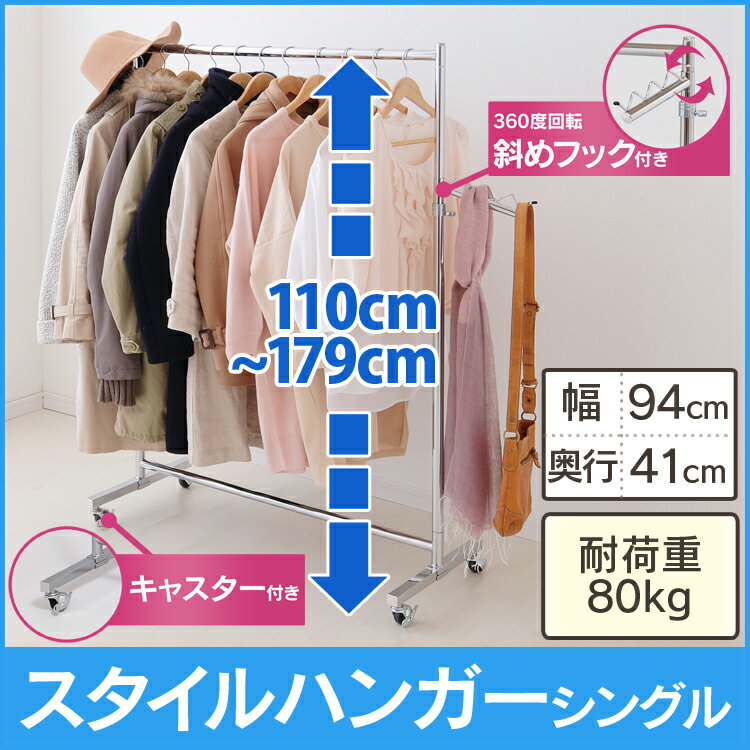 パイプハンガー CW3001-95送料無料 シングル 1連 耐荷重80kg ハンガーラック コートハンガー 頑丈 洋服 業務用 家庭用 ハンガーポール 衣類収納 業務用 物干し 洗濯物干し 室内物干し キャスター付き シルバー ブラック ホワイト おしゃれ【O】