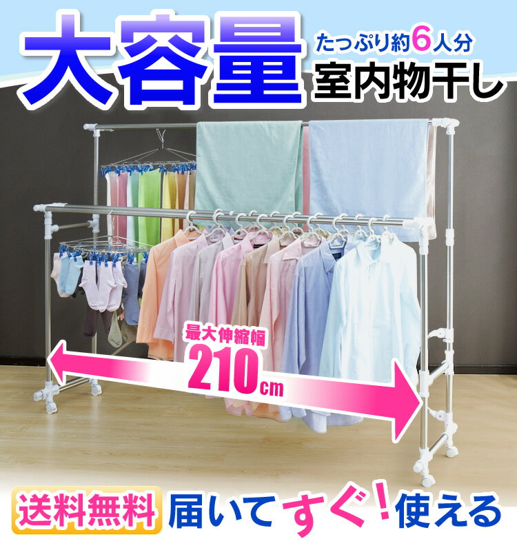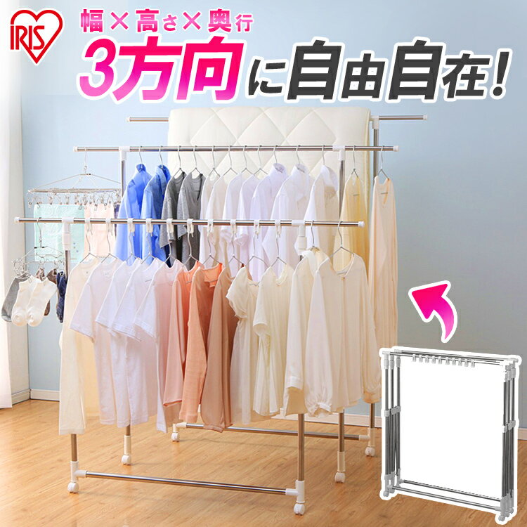【440円相当ポイントバック】 物干し 室内 コンパクト 室内物干し コンパクト物干し ハンガーラック パイプハンガー キャスター付 ワイド 二段 大容量 折りたたみ コーナー 伸縮 高さ調節可能 省スペース スリム エアコン おしゃれ