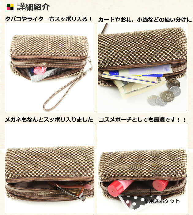 商品説明 11カラーダブルファスナー付き小物ポーチ当店オリジナルビーズでできた小物ポーチです 一番の特徴はダブルファスナー付きな所 用途によって使い分ける事が可能です。